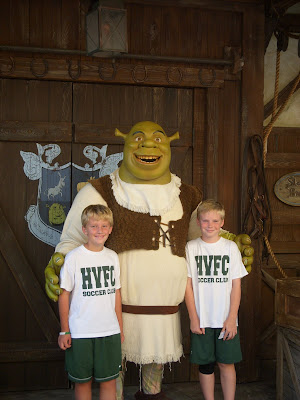 We went to Shrek 4-D attraction and as we were coing out the boys had their picture made with Shrek. Donkey asked the boys which one of them "farted" and then he told them to go hang with Shrek if they were going to stink up the place.